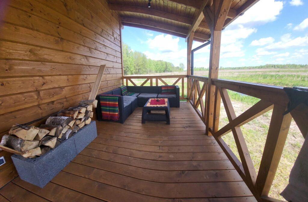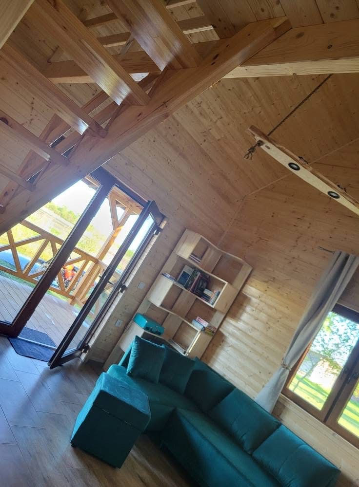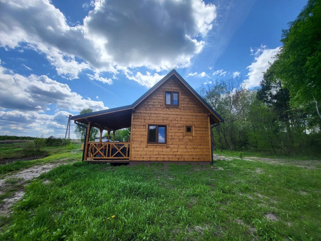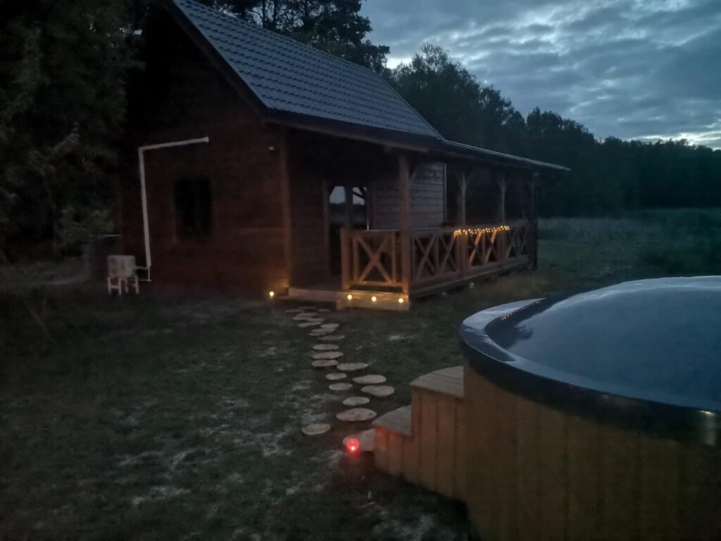 Noclegi Drewniany, w pełni wyposażony domek o powierzchni 35m2 plus 15m2 zadaszonego tarasu. Na dole salonik z aneksem kuchennym, łazienka, sypialnia z podwójnym łóżkiem.Na antresoli 3 pojedyncze łóżka.Balia z hydromasażem. Udogodnienia dla Gości: -klimatyzacja-moskitiery w oknach-pościel-ręczniki-lampki do czytania-koce-suszarka do włosów-pralka-zmywarka-płyta indukcyjna-czajnik-mikrofala-blender-garnki, patelnie-sztućce-talerze, miseczki-szklanki, kubki -podstawowe przyprawy, kawa, herbata-podstawowe kosmetyki i środki czystości W bliskim otoczeniu domku: -hamaki-balia z hydromasażem-miejsce na ognisko-palenisko z rusztem-meble ogrodowe na tarasie-piękny widok na stawy Do dyspozycji Gości: -pięć jednoosobowych kajaków-łowisko-kąpieliska – 2,5 m od tarasu maleńkie zakole rzeczki i 400 m od domku 14 ha staw-80 ha prywatnego terenu Nasze zalety, a jeśli okażą się wadami, to znaczy, że szukasz innego miejsca na wypoczynek: -odludzie-dojazd leśną drogą-nie kosimy trawników, nie mamy wypielęgnowanego ogrodu. Teren Natura2000-pierwszeństwo i władzę ma tu przyroda – pozostawione na zewnątrz przedmioty w nocy stają się własnością lisa, otwarte drzwi są zaproszeniem dla fauny-w okresie lęgowym ptactwa wodnego ograniczamy pływanie kajakami na wybranych stawach-brak telewizora-brak wi-fi-owady w ciepłe dni (chociaż negocjujemy z nimi nieustannie,aby nie były zbyt uciążliwe)-hałas przyrody (ptaki, żaby, koziołki, rykowisko, szum wiatru)-w kominku napalicie sami (nauczymy, pomożemy)-w domku chodzimy w kapciach ( ewentualnie w laczkach, papuciach, ciapkach, ciapach lub boso) Dla głodnych: Po indywidualnym ustaleniu przygotujemy obiad, kolację, pyszności na grillaZakładka “Nasze przysmaki” Jesteśmy EKO: -segregacja śmieci-ekologiczne bio-szambo-studnia głębinowa-nie prasujemy pościeli-zachęcamy do ograniczania zużycia prądu-zachęcamy do oszczędzania wody-trawę kosimy tylko tam, gdzie jest to konieczne, nasze stawy są naturalnym siedliskiem wielu gatunków zwierząt-nie dokarmiamy i nie płoszymy ptaków i zwierząt-nie śmiecimy… brzmi jak coś dla Ciebie? Zapraszamy!